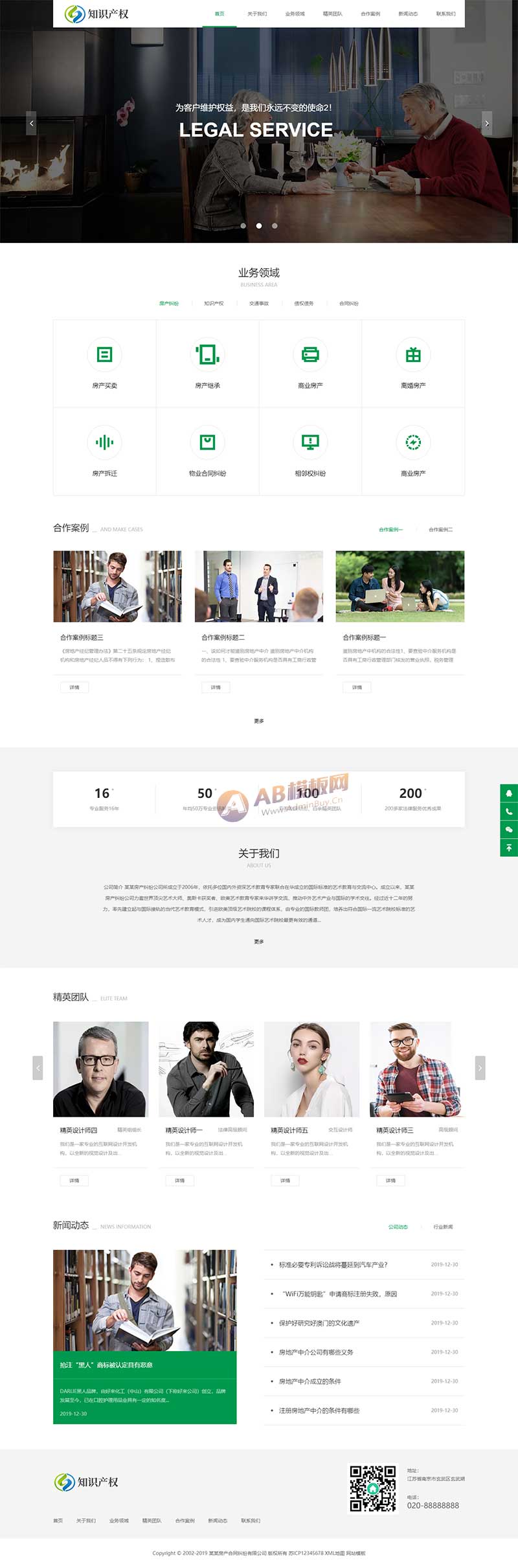 PbootCMS内核开发的网站模板,该模板适用于知识产权网站、企业管理网站等企业,当然其他行业也可以做,只需要把文字图片换成其他行业的即可;